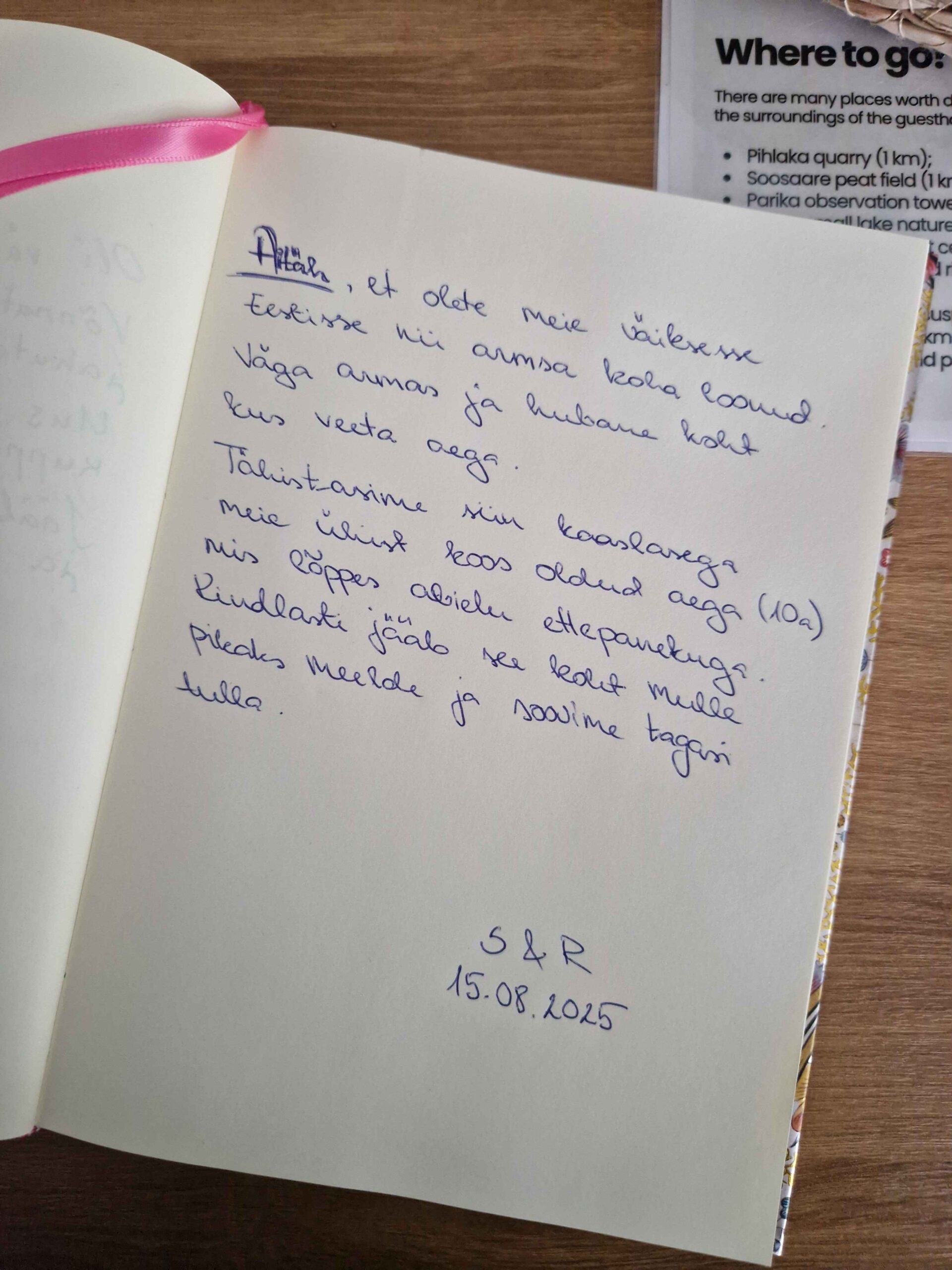 ja soove, mis Luigepesa külalisteraamatusse augustikuul kirjutasti – need emotsioonid ja lood